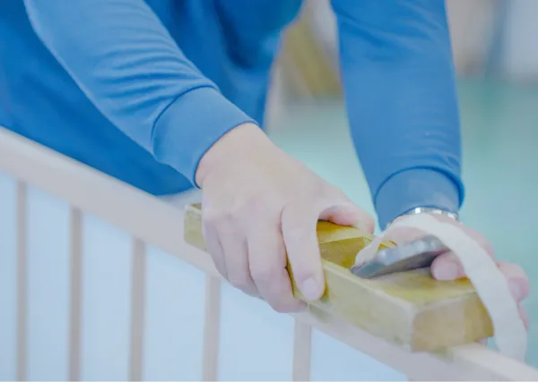 手加工が入ると、職人の能力で大きく差が生じるため、手加工の技術を高めるための訓練に、一番多くの時間を割いています。